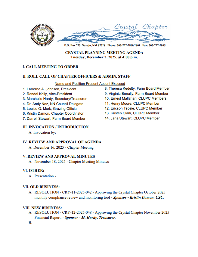 Del. Nez District Mtng. – 12/16/2025, 11:00 am, Quality Inn