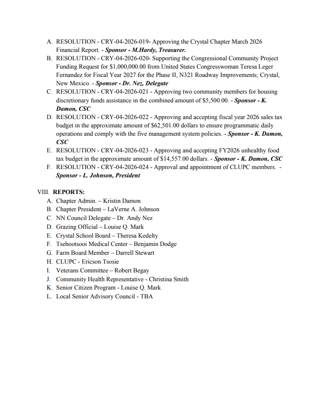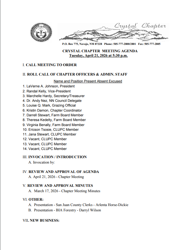Del. Nez District Mtng. – 04/28/2026, 9:00 am, TBA